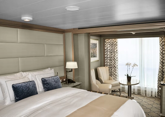 VI - Vista Suite s oknom 32 m². Panoramatické neotvárateľné okno. 4. paluba. Max 2 osoby. 12 600 € 6 300 € za osobu