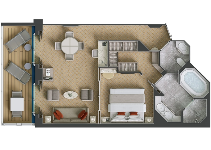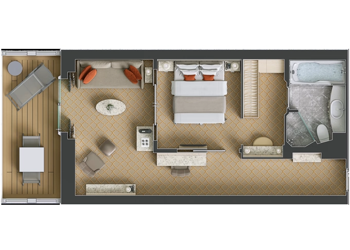 SV - Superior Veranda Suite 30 m² + balkón 6 m². 7,8,9. paluba. Max 3 osoby. 14 600 € 14 600 € za osobu