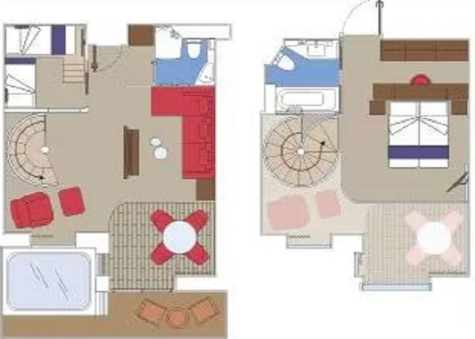 | YJD - Yacht Club Duplex Suite s vírivkou 46 m² + balkón 30 m². Vírivka. 2 podlažia, šatník, 2 kúpeľne (1 s vaňou). Max 4 osoby. 16. paluba. Cenový model MSC Yacht Club. Easy package v cene | 7 950 € 7 950 € za osobu |